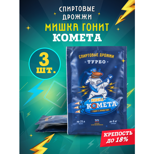 Дрожжи спиртовые турбо для самогона Мишка гонит "Комета", 100 г, 3 шт