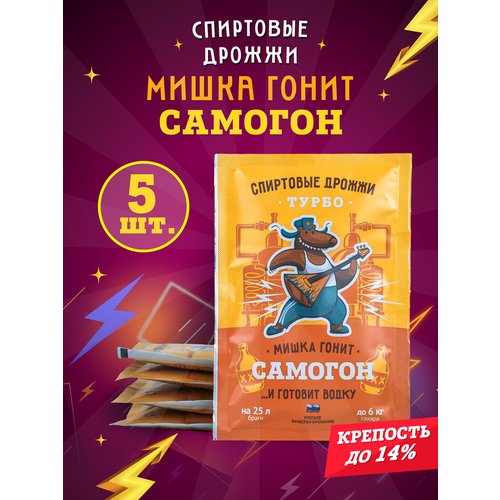 Дрожжи спиртовые турбо для самогона Мишка гонит "Самогон", 70 г, 5 шт