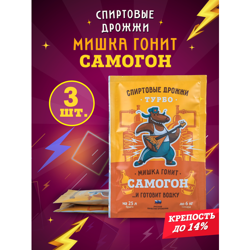 Дрожжи спиртовые турбо для самогона Мишка гонит "Самогон", 70 г, 3 шт