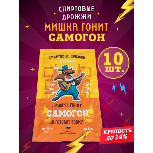 Дрожжи спиртовые турбо для самогона Мишка гонит "Самогон", 70 г, 10 шт