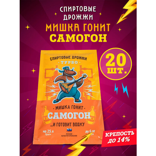 Дрожжи спиртовые турбо для самогона Мишка гонит "Самогон", 70 г, 20 шт.