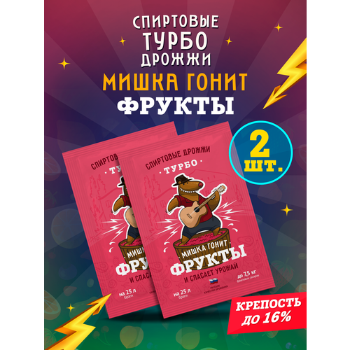 Дрожжи спиртовые турбо для самогона Мишка гонит "Фрукты", 70 г, 2 шт