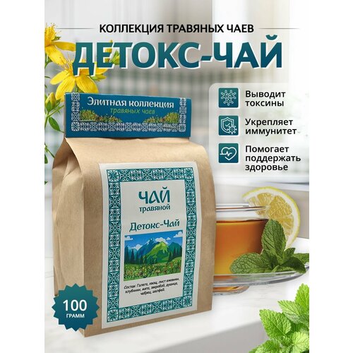 Детокс чай для очищения организма и выведения токсинов / Очищающий травяной сбор с галегой, хвощем и семенем льна / Фиточай 100г.