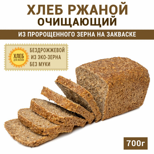 (1х700г) Хлеб Ржаной очищающий, цельнозерновой, бездрожжевой, на ржаной закваске — Хлеб для Жизни