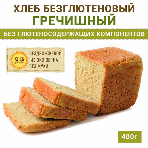(1х400г) Хлеб Гречишный безглютеновый, цельнозерновой, бездрожжевой на закваске — Хлеб для Жизни