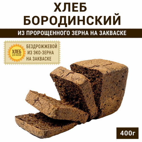 (1х400г) Хлеб Бородинский цельнозерновой, бездрожжевой на ржаной закваске — Хлеб для Жизни