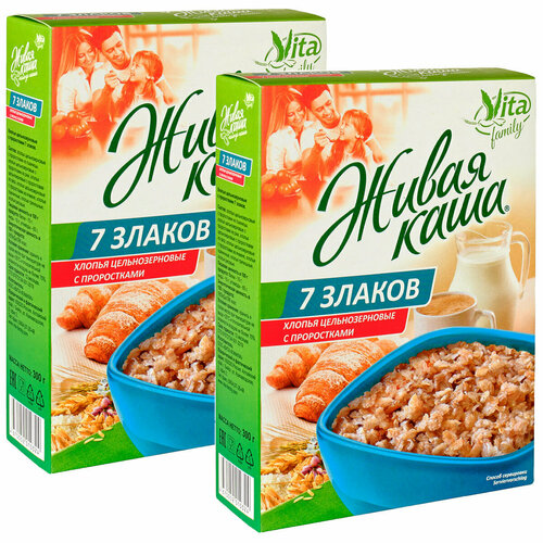 Живая каша. 7 злаков. Хлопья цельнозерновые с проростками, комплект 2 шт. по 300 грамм, Vita Family
