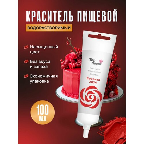 Жидкий гелевый пищевой краситель Топ продукт (Топ Декор) для торта, кондитерских изделий, крема, мастики, 100 гр (красный)