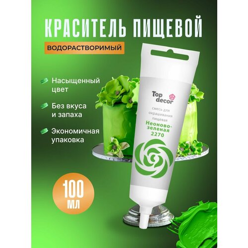 Жидкий гелевый пищевой краситель Топ продукт (Топ Декор) для торта, кондитерских изделий, крема, мастики, 100 гр (Неоново-зеленый)