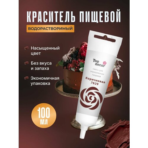 Жидкий гелевый пищевой краситель Топ продукт (Топ Декор) для торта, кондитерских изделий, крема, мастики, 100 гр (коричневый)