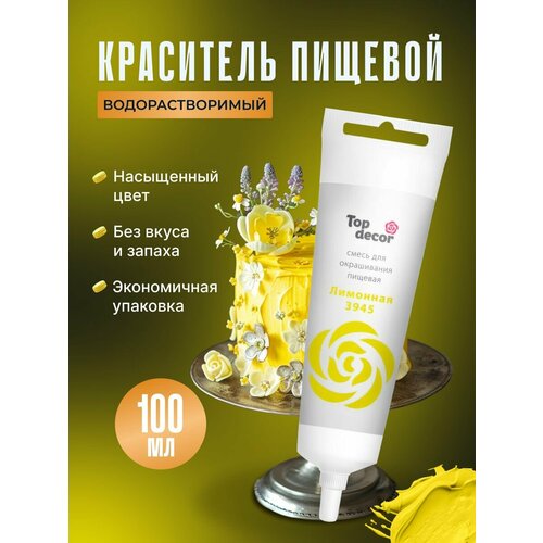 Жидкий гелевый пищевой краситель Топ продукт (Топ Декор) для торта, кондитерских изделий, крема, мастики, 100 гр (лимонный)