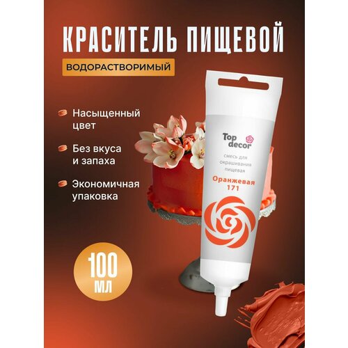 Жидкий гелевый пищевой краситель Топ продукт (Топ Декор) для торта, кондитерских изделий, крема, мастики, 100 гр (оранжевый)