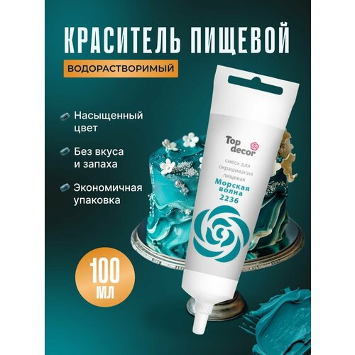 Жидкий гелевый пищевой краситель Топ продукт (Топ Декор) для торта, кондитерских изделий, крема, мастики, 100 гр (морская волна)