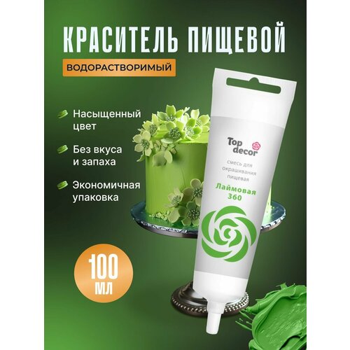 Жидкий гелевый пищевой краситель Топ продукт (Топ Декор) для торта, кондитерских изделий, крема, мастики, 100 гр (лаймовый)