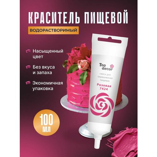 Жидкий гелевый пищевой краситель Топ продукт (Топ Декор) для торта, кондитерских изделий, крема, мастики, 100 гр (розовый)