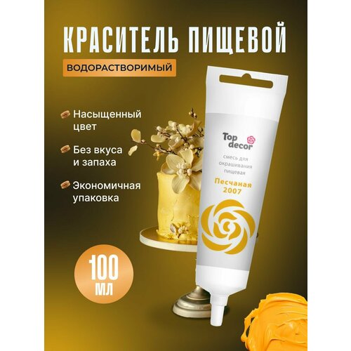 Жидкий гелевый пищевой краситель Топ продукт "Top decor" для торта, кондитерских изделий, крема, мастики, 100 гр (Песчаный)