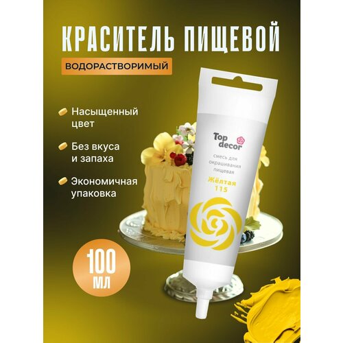 Жидкий гелевый пищевой краситель Топ продукт (Топ Декор) Желтый для торта, кондитерских изделий, крема, мастики, 100 гр