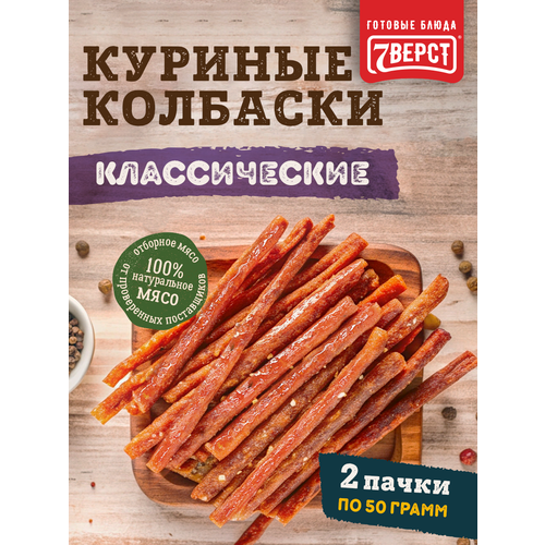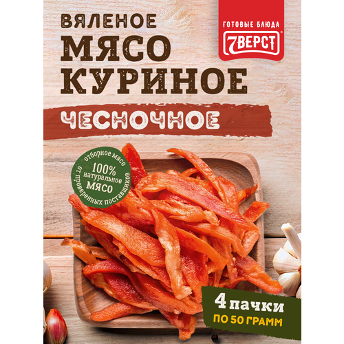 7 Вёрст Чипсы мясные из курицы "Чесночное" Снеки к пиву 100 г