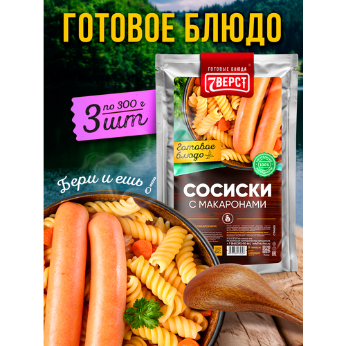 7 вёрст Сосиски с макаронами. Готовая еда в реторт-пакете. Консерва в фольге Набор 3 уп. по 300 г