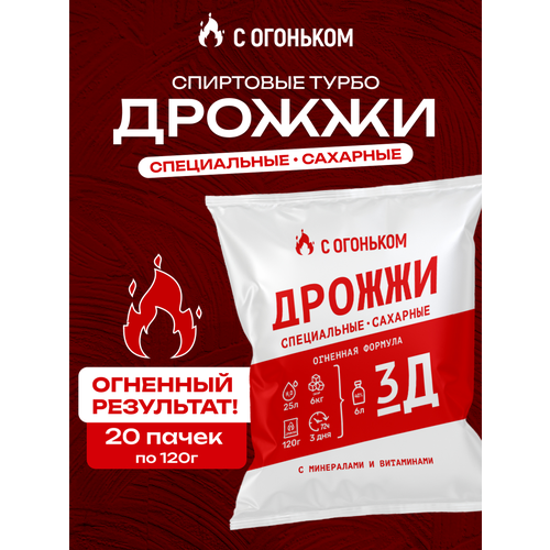 Дрожжи спиртовые турбо для самогона "С огоньком 3Д" 20 шт по 120 гр