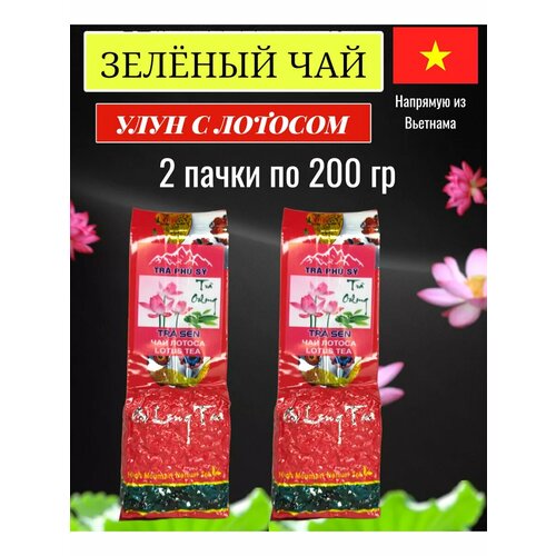 Зеленый чай TRA PHU SY, с лотосом, крупнолистовой, прессованный, 2 упаковки по 200г