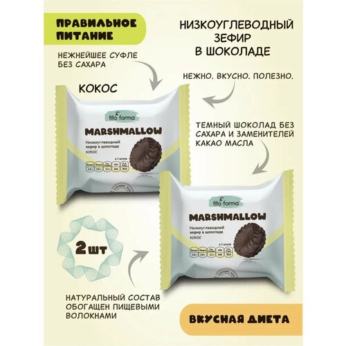 Зефир в шоколаде без сахара Кокос 40 г, 2 шт