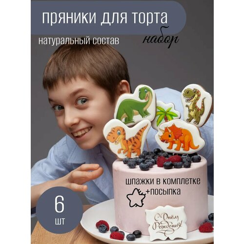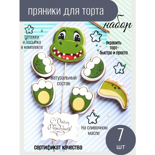 Имбирные пряники на торт Динозаврик мордочка, 7 шт