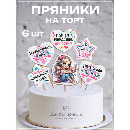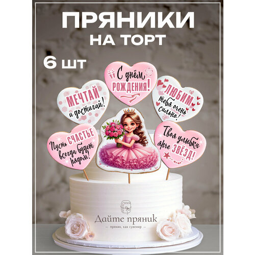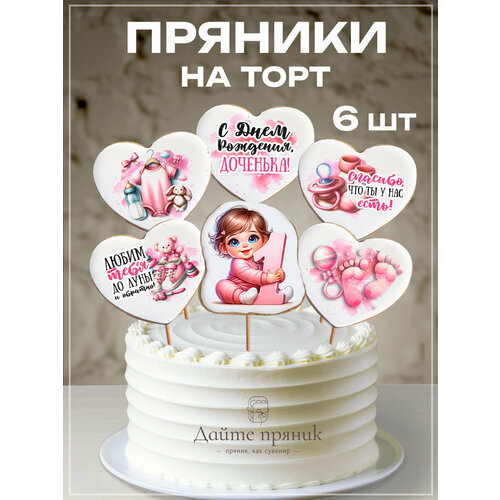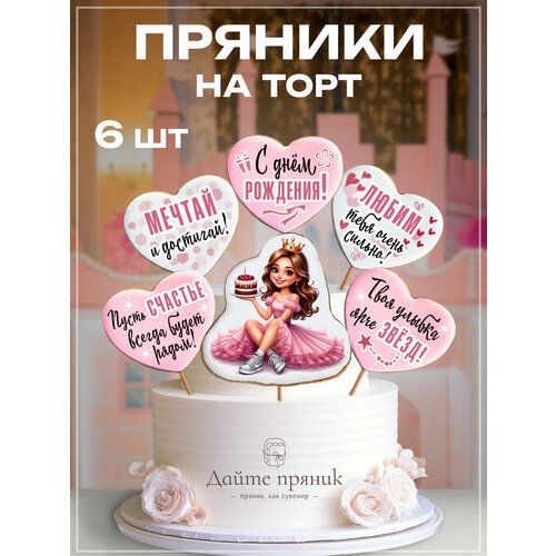 Имбирные пряники на день рождения для девочки, дочки, топперы на торт, украшение для торта