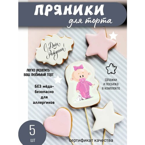 Имбирные пряники на торт для девочки, дочки на 1 годик, украшение для торта девочке 1 год