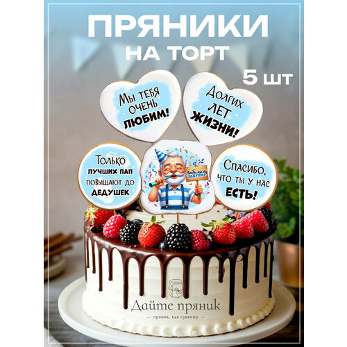 Имбирные пряники на торт дедушке, топперы на торт для дедушки