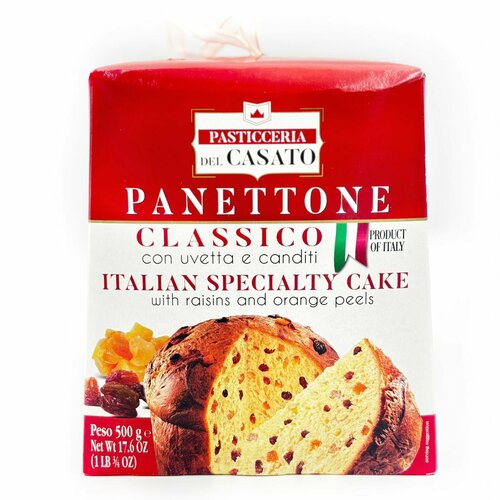 Итальянский рождественский кулич Panettone "PASTICCERIA del CASATO с изюмом и цукатами , 500 гр