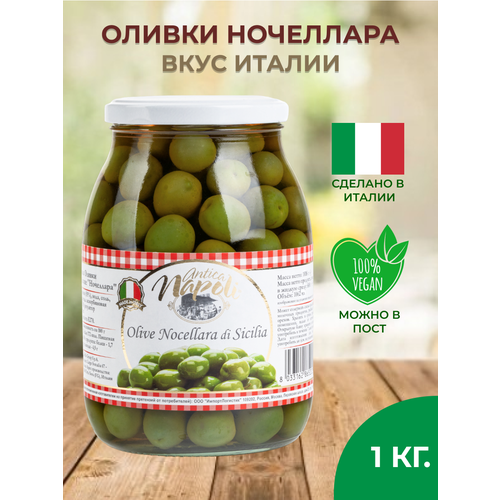 Итальянские зеленые Оливки Ночеллара с косточкой в стеклянной банке, Antica Napoli , 1062 мл