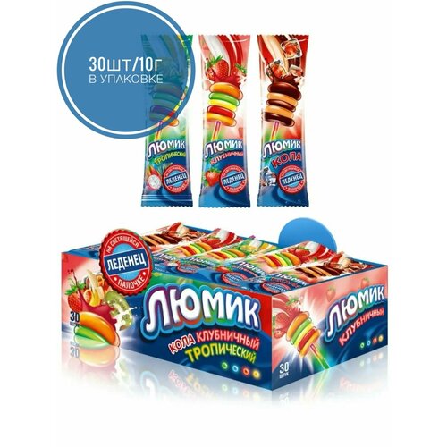 Карамель на светящейся палочке "Люмик" клубника, кола, тропик 10г/30шт.