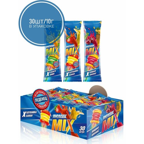 Карамель на палочке "Crazy Ланч"/ Сладости для детей/ Детские конфеты ассорти, блок 30 шт./ 1 шт. 13 грамм