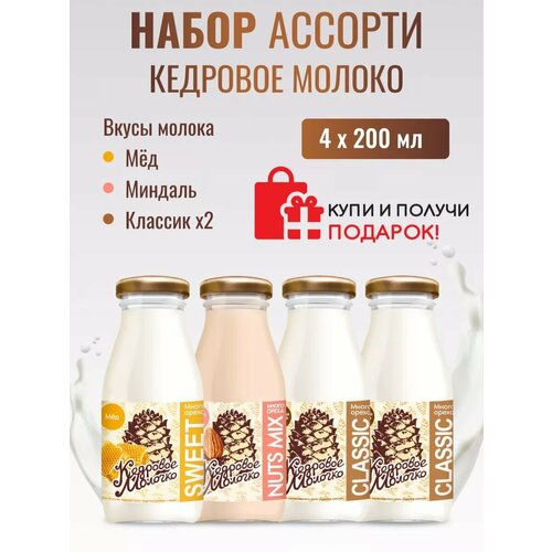 Кедровое молоко Ассорти набор 4 шт + подарок