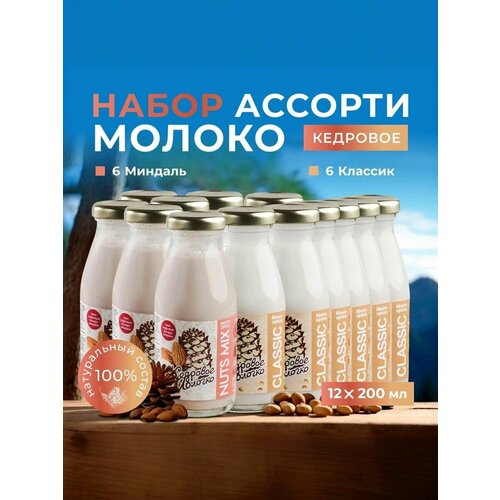 Кедровое молоко Ассорти Миндаль Классик набор 12 шт