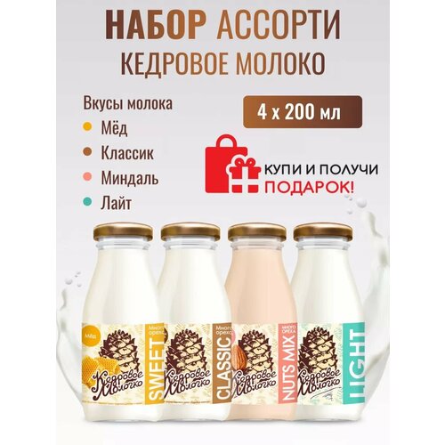 Кедровое молоко, набор ассорти 4 шт + подарок
