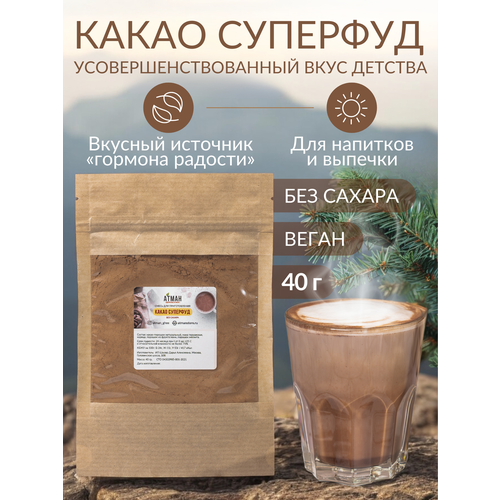 Какао суперфуд 40г, натуральный растворимый порошок, premium какао для веганов, ПП продукт без лактозы атман