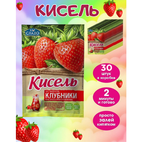 Кисель быстрого приготовления "Клубника" — 30 штук по 35 грамм