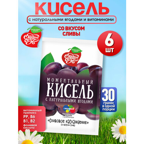 Кисель Сладкий Сезон, со вкусом сливы, 6шт. по 30гр, быстрого приготовления в пакетиках, с витаминами