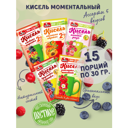 Кисель натуральный быстрого приготовления в пакетиках, Ассорти, 30 г, 15 шт.