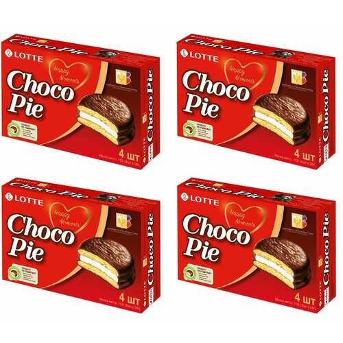 Choco Pie Печенье Lotte 122 гр, 4 упаковки по 4 пачки