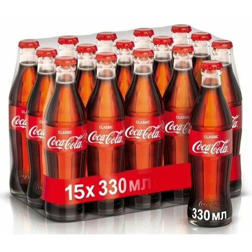 Coca Cola Classic, 0.33 л, 15 шт, бутылка, стекло, Кока Кола, Классик, 0,33 л, газированный напиток, упаковка, Грузия, стеклянная