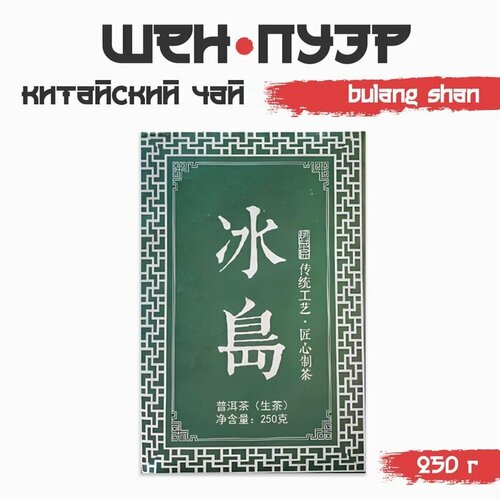 Китайский выдержанный зеленый чай "Шен Пуэр. Bulang shan", 250 г, 2018 г, Юньнань, кирпич