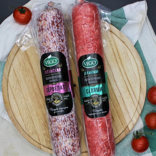 Колбаса VEGO Сервелат Фирменный и Салями Пряная, постная, растительная, 800г, 2шт