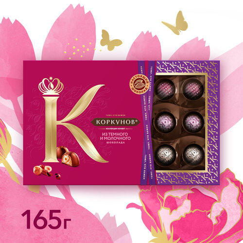 Коллекция шоколадных конфет Коркунов из темного и молочного шоколада с фундуком и вафельной крошкой, 165 г