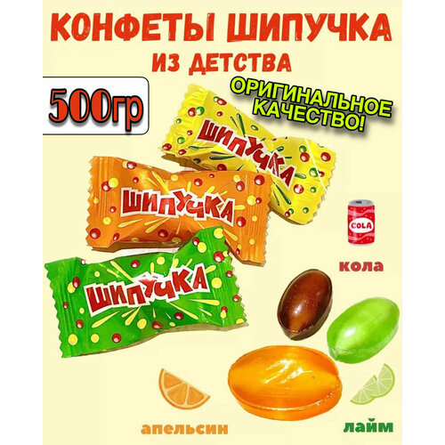 Конфеты «Шипучка» с порошковой начинкой, 500гр со вкусами апельсина, лайма и колы