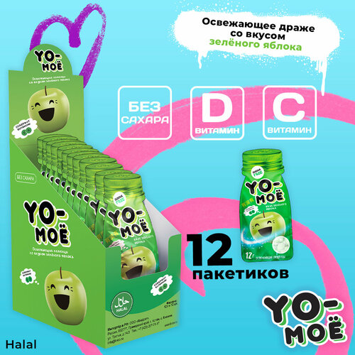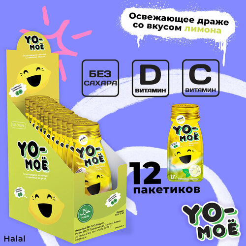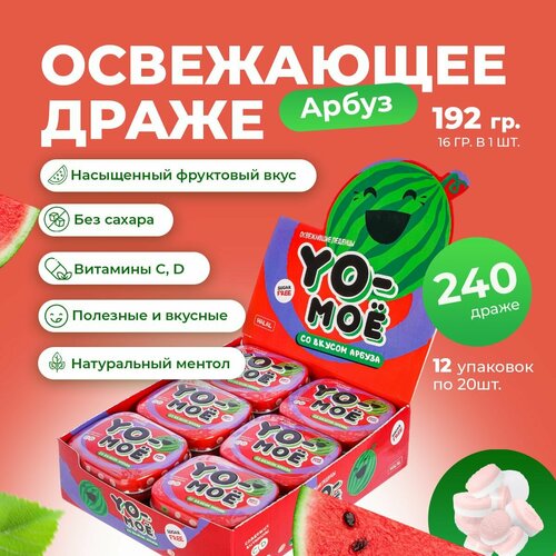 Конфеты без сахара с витамином С и D со вкусом арбуза 12 баночек по 16 г. YO-MOЁ