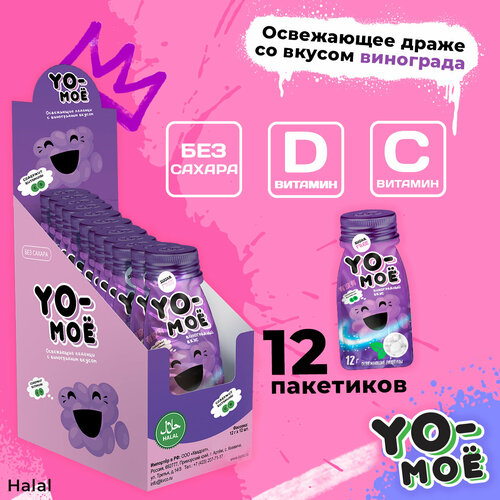 Конфеты без сахара с витамином С и D со вкусом винограда 12 пачек по 12 г