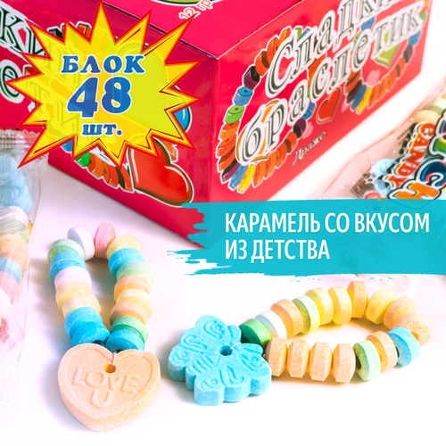 Конфеты драже Сладкий Браслетик (блок 48 шт. по 12 г). Фруктово-ягодная карамель ассорти. Вкусное украшение